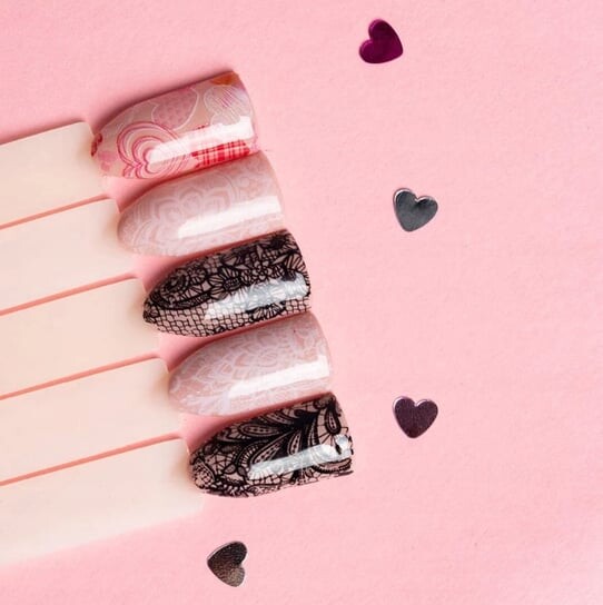 Черная фольга для переноса кружева предназначена для украшения ногтей. Это быстрый, легкий и эффектный маникюр для особых случаев. Это идеальная идея оформления любого торжества, где появление эффектных украшений будет уместно. Трансферную фольгу Semilac можно наносить на весь ноготь или использовать для создания узоров определенной формы — выбирайте, что вам больше по душе. Они прекрасно смотрятся на светлых тонах, создавая причудливые украшения на ногтях.