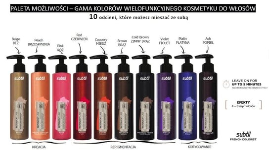 Способ применения: После ежедневного мытья волос шампунем, специально подобранным для ваших волос (мы рекомендуем совместимые по ингредиентам шампуни из линии Color Lab Subil), нанесите и массируйте небольшое количество пигмента Retouch. во все волосы. Оставьте на волосах на 5-10 минут. Продолжительность действия на волосы имеет решающее значение для глубины цвета и интенсивности оттенка. Пигменты интенсивные, поэтому рекомендуем использовать осторожно, особенно на светлых волосах. По истечении времени ожидания тщательно смойте маску теплой водой. Укладывайте как обычно.