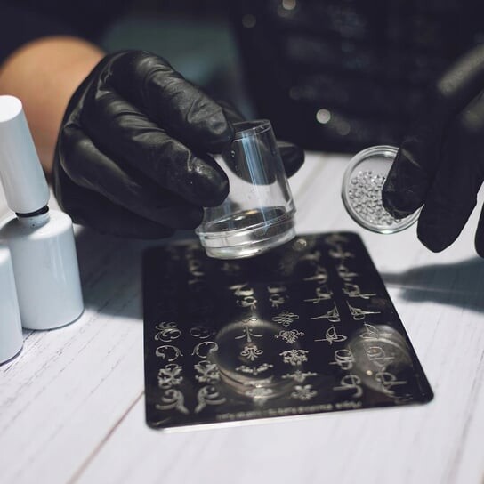 1. Покройте выбранный рисунок на пластине или пластине для стемпинга лаком для стемпинга