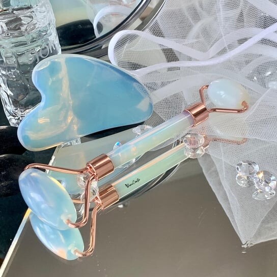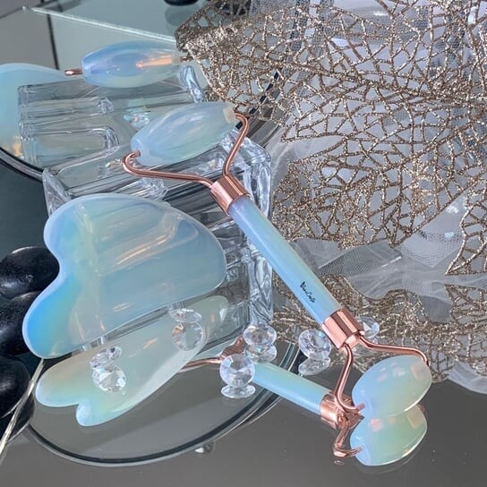 РОЛИКОВЫЙ МАССАЖЕР ДЛЯ ЛИЦА С ОПАЛОМ + КОРОБКА ГУА ША