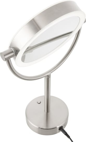 Зеркало косметическое Диаметр 18 см. Двустороннее исполнение. Предназначено для личной гигиены женщин, мужчин и подростков. Одна сторона дает нормальное отражение, другая с 5-кратным увеличением позволяет идеально ухаживать за каждой деталью. Светодиодная подсветка. Экономичная эксплуатация (расход макс. 5 Вт) Включение и выключение подсветки с помощью переключателя, позволяющего работать даже мокрой рукой. Возможность вертикального наклона. Изготовлен из нержавеющей стали. Питание от сети. Размеры (ширина × глубина × высота): 220 × 120 × 360 мм. Вес: 0,8 кг. /div>