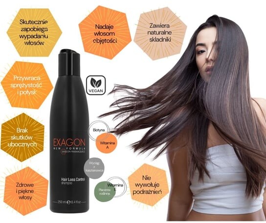 Лосьон EXAGON против выпадения волос. Он содержит витамины и растительные ингредиенты, которые укрепляют волосы, улучшают их внешний вид и предотвращают выпадение волос. Кроме того, он обладает восстанавливающим и освежающим эффектом свежести. Нанесите после мытья волос и оставьте до полного впитывания.