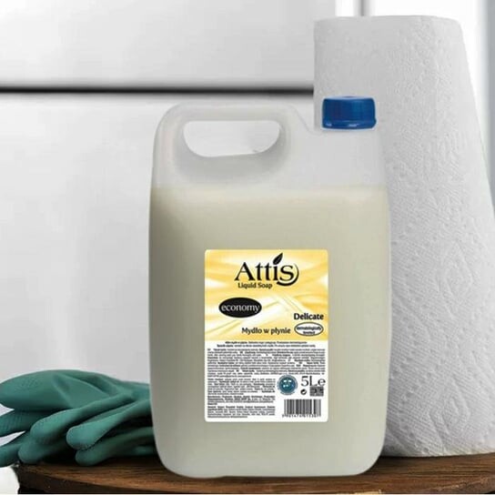 ЖИДКОЕ МЫЛО 5л НЕЖНОЕ, ЭФФЕКТИВНОЕ AttisНЕЖНОЕ ЖИДКОЕ МЫЛОЖидкое мыло ATTIS — эффективное чистящее средство, предназначенное для повседневного использования. Мыло густое и поэтому очень эффективное в использовании, обильно пенится. Можно использовать для мытья рук и всего тела.БЕЗОПАСНО ДЛЯ КОЖИДля ежедневного ухода за чувствительной кожей. Прекрасно моет и ухаживает, оставляя кожу чистой, ухоженной и ароматной.ДЕРМАТОЛОГИЧЕСКИЙ ТЕСТ – 100% УДОВЛЕТВОРЕНИЕДЛЯ ЧУВСТВИТЕЛЬНОЙ КОЖИЭконом-косметические и чистящие средства серии Attis, формула которых основана на безопасных ухаживающих ингредиентах и ароматических композициях, обеспечивающих комфорт повседневного ухода.ПРЕИМУЩЕСТВА:✔эффективность;< div >✔отлично очищает;✔простой состав;✔улучшает состояние кожи;✔универсален, как для лица, так и для тела;✔универсален, как для лица, так и для тела;✔улучшает состояние кожи;✔универсален, как для лица, так и для тела;✔улучшает состояние кожи;✔ div>СПОСОБ ПРИМЕНЕНИЯ:Нанесите небольшое количество мыла на влажные руки, помассируйте, смойте водой.НЕЙТРАЛЬНЫЙ PH Нейтральный pH делает жидкое мыло не обладающим раздражающим действием, а присутствующий в составе глицерин обладает увлажняющими и смазывающими свойствами, что положительно влияет на гладкость и эластичность кожи рук. Специально подобранные нежные ингредиенты гарантируют, что кожа не пересохнет даже после многократного использования мыла, а останется свежей и гладкой на ощупь. Пользоваться данным видом косметики следует людям, имеющим проблемы с кожей.✔ В НАБОР ВХОДИТ: