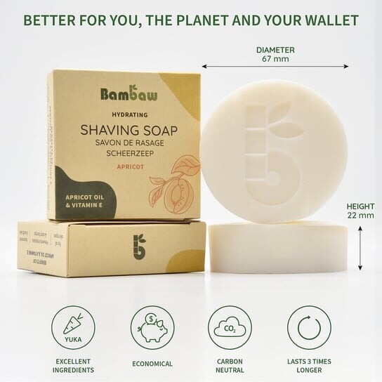 Мыло для бритья Bambaw экологически чистое. Хотя основным ингредиентом жидких формул часто является вода, наше мыло для бритья не разбавлено и, следовательно, более концентрировано. В результате мы используем гораздо меньше воды в нашем производственном процессе.