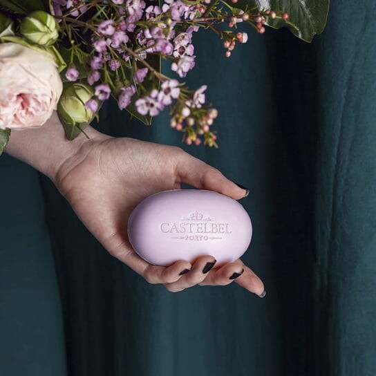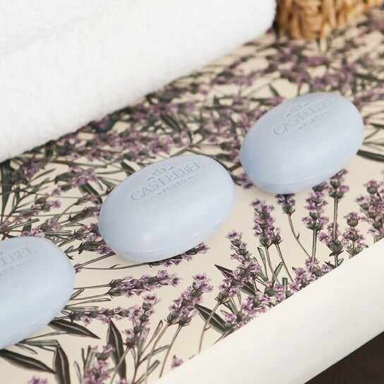 Ароматное мыло Castelbel Lavender в подарок близким или для дома. Каждое мыло штампуется вручную и вручную заворачивается португальскими мастерами в бумагу, украшенную изображениями лаванды. Мыло на 100% растительного происхождения, пахнет успокаивающим ароматом лаванды и имеет кремовую ароматную пену. Все это упаковано в роскошную бумажную упаковку.