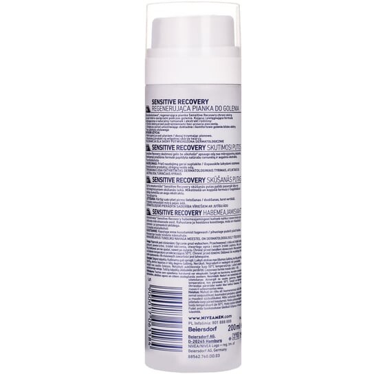 РЕГЕНЕРИРУЮЩАЯ ПЕНА NIVEA MEN SENSITIVE RECOVERY Не содержащая спирта* регенерирующая пена Sensitive Recovery защищает кожу от микропорезов во время бритья. Успокаивающая и питательная формула, обогащенная натуральными экстрактами ромашки и растений, защищает кожу от раздражения, не вызывая ощущения жжения. Кроме того, он смягчает бороду, обеспечивая чистое и комфортное бритье вблизи кожи.