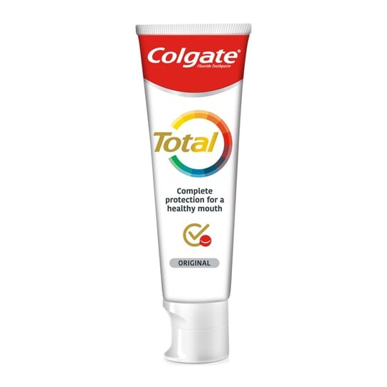 Используйте зубную пасту COLGATE TOTAL ORIGINAL с другими продуктами Colgate, чтобы эффективно очищать зубы, удалять налет и бороться с бактериями, которые скапливаются на поверхности зубов. зубы, язык, десны и щеки.