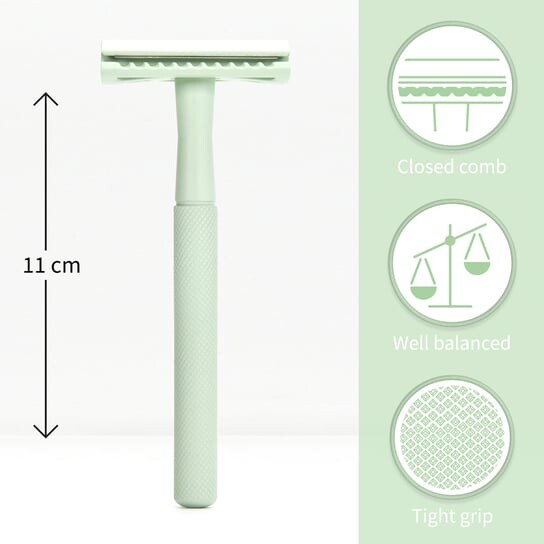 Бритва двусторонняя многоразовая имеет длинную перфорированную ручку из высококачественного металла. Благодаря этому бритва устойчиво держит руку и обеспечивает комфорт при бритье тела и лица.