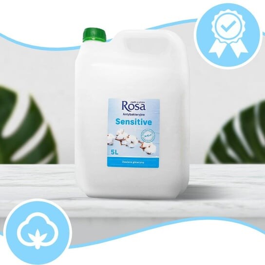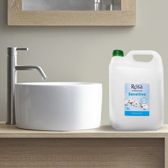 Антибактериальное жидкое мыло Rosa Sensitive 5л. Обогащен комплексом витаминов А, Е, F и глицерином, который увлажняет и питает кожу. Мыло с нейтральным pH помогает поддерживать кожу увлажненной и здоровой бактериальной флорой.