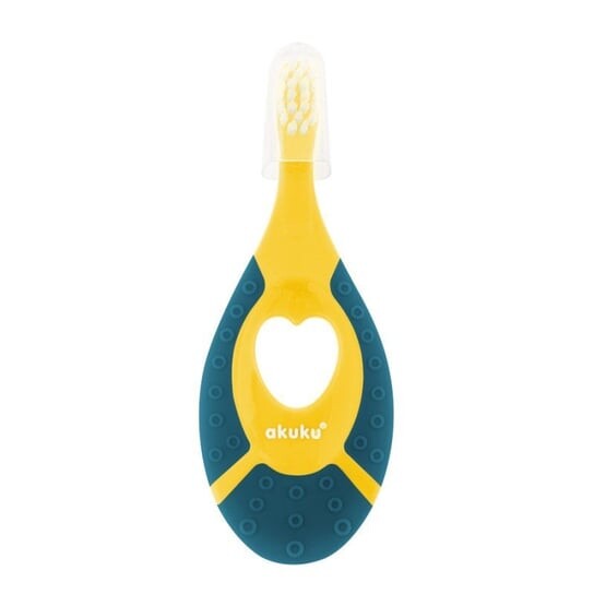 Зубная щетка AKUKU 0-2 года ТЕМНО-СИНЯЯ Зубная щетка «akuku» предназначена для детей 0-2 лет. При регулярном использовании мы формируем правильную привычку чистить зубы даже у самых маленьких детей, чтобы они как можно раньше привыкали к гигиене полости рта. Ручка зубной щетки спроектирована таким образом, чтобы не допустить ее слишком глубокого проникновения в рот ребенка. В этом возрасте зубную щетку следует использовать под присмотром родителей. Этот продукт покрыт силиконом, который отлично подходит для прорезывания зубов путем массажа раздраженных десен. Важнейшие особенности нашей зубной щетки: • Короткая головка защищает от порезов и раздражений • Мягкая щетина мягко массирует десны • Силиконовую ручку можно использовать в качестве прорезывателя во время прорезывания зубов • Специально разработанное отверстие в ручке удобно как для родителя, так и для ребенка/дел >
