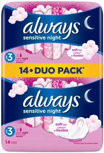 Гигиенические прокладки, Sensitive Night, 14 шт. Always, Ultra 2 006₽