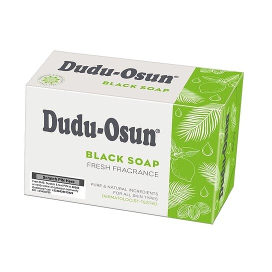 Dudu-Osun — это африканское черное мыло, изготовленное вручную традиционным способом из чистых натуральных ингредиентов и трав из тропических лесов и саванн. Кусковое мыло «Дуду-Осун» содержит измельченное дерево осун (камвуд) – африканский сандал, дерево какао и пальмовые листья. Эти ингредиенты оказывают очищающее, освежающее и слегка отшелушивающее действие. Мыло содержит как минимум смягчающее и регенерирующее масло ши, алоэ, которое успокаивает и увлажняет кожу, мед, который помогает уменьшить прыщи и питает кожу, и экстракт лимона, который придает освежающий цитрусовый аромат. Сочетает в себе легкие пилинговые и питательные свойства. Идеально подходит для сухой, загрязненной и проблемной кожи. Присутствие природного глицерина может привести к конденсации на нем воды. Неравномерный цвет естественен.