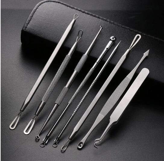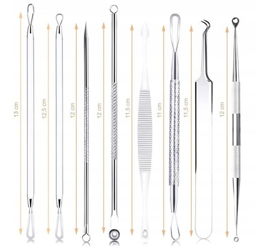 - 8 двусторонних ложечек для безопасное удаление черных точек, черных точек и прыщей.