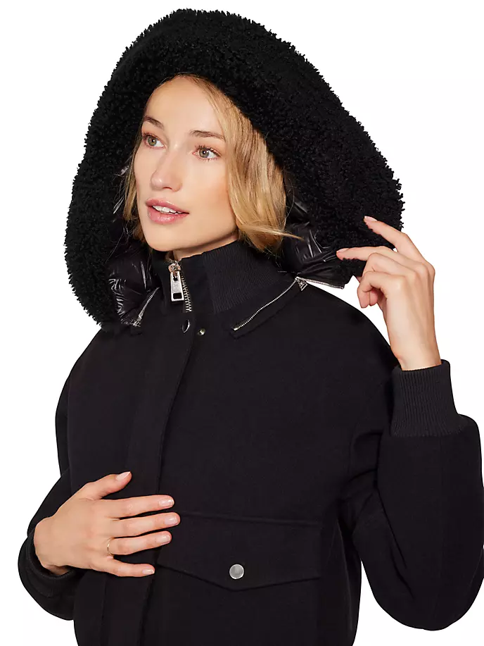 Специализируясь на роскошной, высококачественной верхней одежде и одежде, пуховая куртка-бомбер компании Norge Wool отличается водо- и ветрозащитной отделкой, сочетающей утепление из шерсти и кашемира. Этот слегка объемный силуэт украшен застежками на кнопках и молниях, а также просторными карманами с клапанами. Воротник-стойка, с капюшоном. Длинные рукава, трикотажные манжеты. Нагрудные карманы с клапанами. Подол вязанной резинкой. Застежка-молния спереди, ветрозащитная планка на кнопках. 75% натуральная шерсть/20% полиамид/5% кашемир. Наполнитель: 90% утиный пух/10% перо. Отделка: 100% овчина. Тип меха: Натуральный ягненок. Происхождение меха: Испания. Сухая чистка. Сделано в Италии. Около 22 дюймов от плеча до подола.