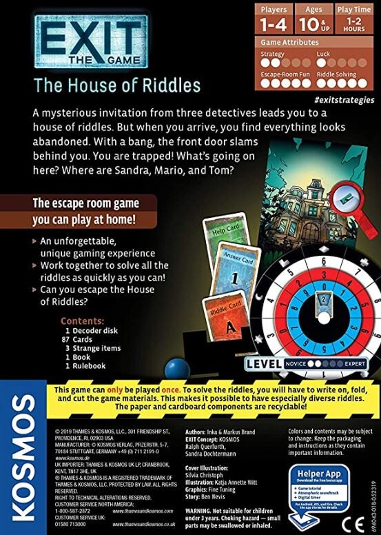 Командная работа: до 4 игроков работают вместе, чтобы решить ряд загадок и головоломок, взломать коды и сбежать! Отключено: приложение не требуется! Все необходимое для разгадывания загадок (включая подсказки, если необходимо) находится в коробке.