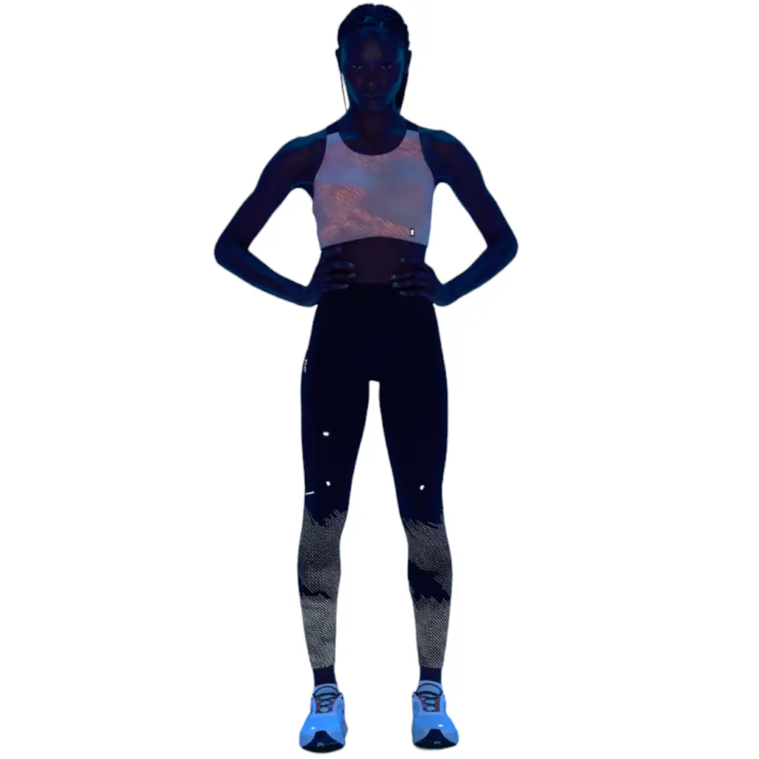 Теплые утепленные тайтсы, выделяющиеся на фоне других, со светоотражающим принтом, обеспечивающим видимость при слабом освещении.