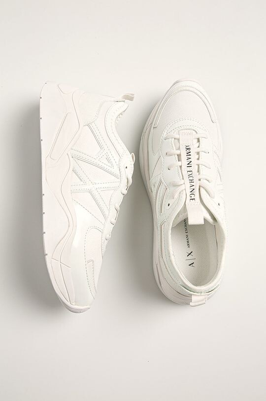 Туфли из коллекции Armani Exchange. Модель выполнена из комбинации текстиля и синтетического материала.