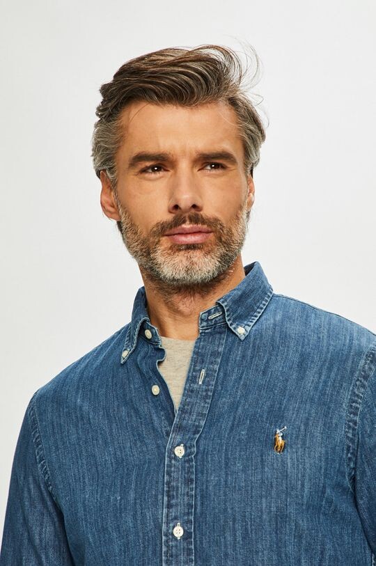 Рубашка из коллекции Polo Ralph Lauren. Модель из джинсовой ткани. Имеет воротник на пуговицах.