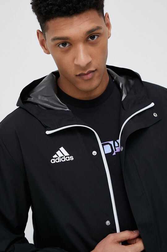 Куртка из коллекции Adidas Performance. Неутепленная модель из гладкой ткани. Чрезвычайно прочный материал.