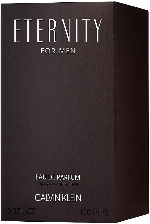 Eternity For Men — парфюмерная вода от Calvin Klein. Ароматно-фужерная парфюмерная композиция, выпущенная в 2019 году, наполнена неотразимой силой мужественности. Аромат начинается с фруктовых, пикантных нот бергамота и лаванды в верхних нотах в сочетании со свежим лимоном и мандарином. Ягоды можжевельника и свежий апельсиновый цвет, пряный кориандр, базилик и шалфей и, наконец, букет из ландыша, герани, жасмина и лилии образуют ноту сердца.