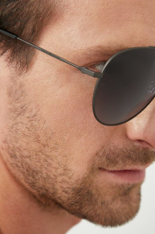 Солнцезащитные очки из коллекции Tommy Hilfiger. Модель с гладкими линзами и оправой из комбинации пластика и металла. Имеет фильтр UV 400.