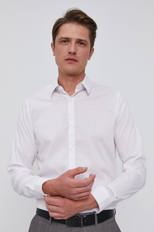Рубашка из коллекции Guess. Модель изготовлена ​​из тонкой, слегка эластичной ткани. Имеет классический жесткий воротник.