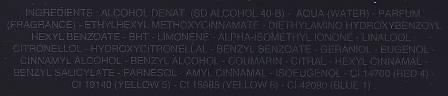 Верхние ноты: бергамот, персик, корица, лимон, абрикос, розовое дерево , Слива