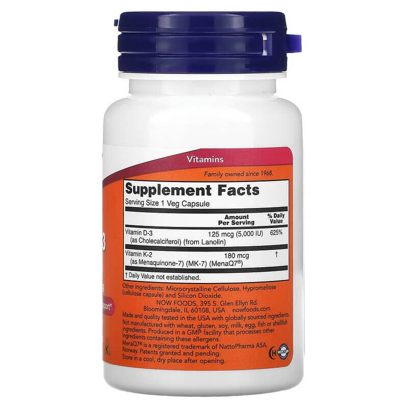 NOW Mega D-3 и MK-7 сочетают в себе витамины D-3 и K-2, два питательных вещества, роль которых в здоровье костей, зубов и сердечно-сосудистой системы тщательно исследована. Витамин D-3 вместе с кальцием поддерживает здоровье костей, а недавние исследования показывают, что он также важен для здоровья иммунной системы.