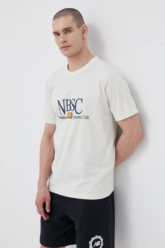 Хлопковая футболка New Balance, бежевый