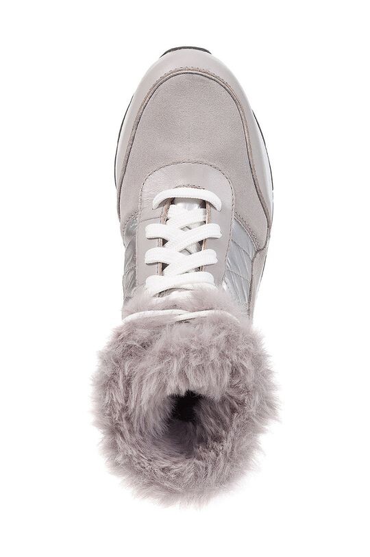 Зимние ботинки из коллекции Geox. Модель выполнена из сочетания натуральной кожи, текстильного материала и синтетического материала.