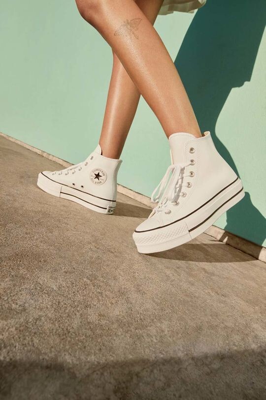 Кроссовки из коллекции Converse. Модель изготовлена ​​из натуральной кожи. Модель с текстильным салоном, комфортным для ноги и позволяющим легче содержать обувь в чистоте.