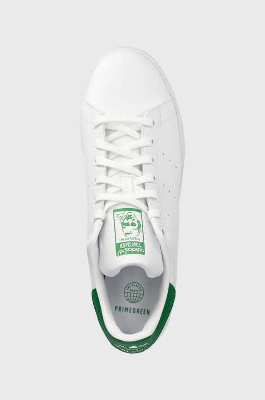 adidas Stan Smith — культовые кроссовки, получившие известность как икона моды с момента своего дебюта в 1960-х годах. Они характеризуются простым классическим силуэтом с белым верхом из высококачественной переработанной ткани Primegreen. материалов, сочетается с зелеными деталями на язычке и пятке. Логотип adidas с тремя полосками, размещенный по бокам верха, — тонкий, но легко узнаваемый элемент.