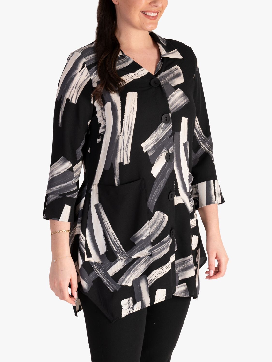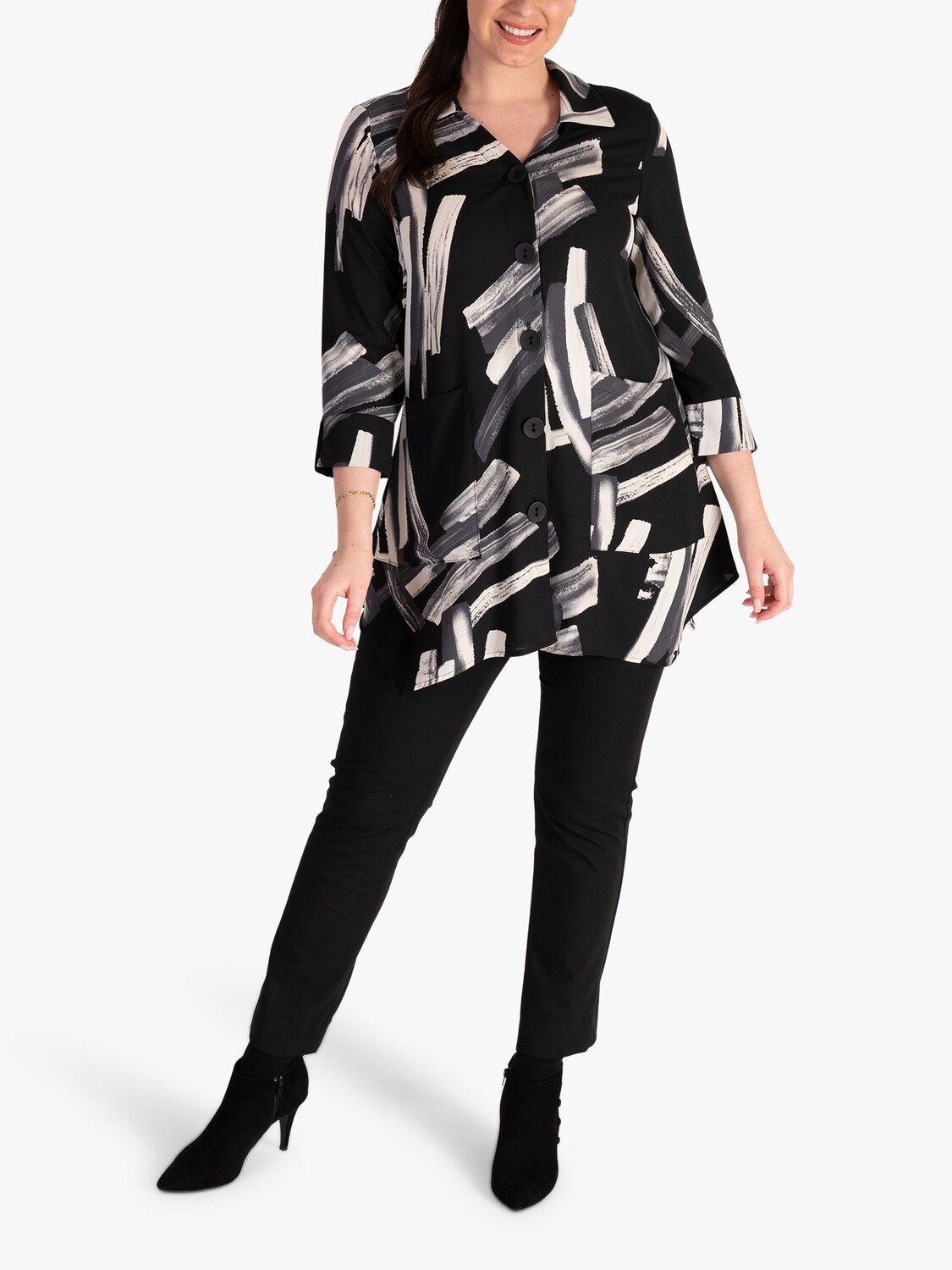 Эта блузка от chesca, которую можно легко выбрать, может похвастаться насыщенным абстрактным принтом. Она выполнена из легкой, но прочной ткани с классическим V-образным вырезом и рукавами длиной три четверти. Это идеальная вещь, которая защитит вас, независимо от того, хотите ли вы отправляетесь в однодневную поездку или бежите в офис.