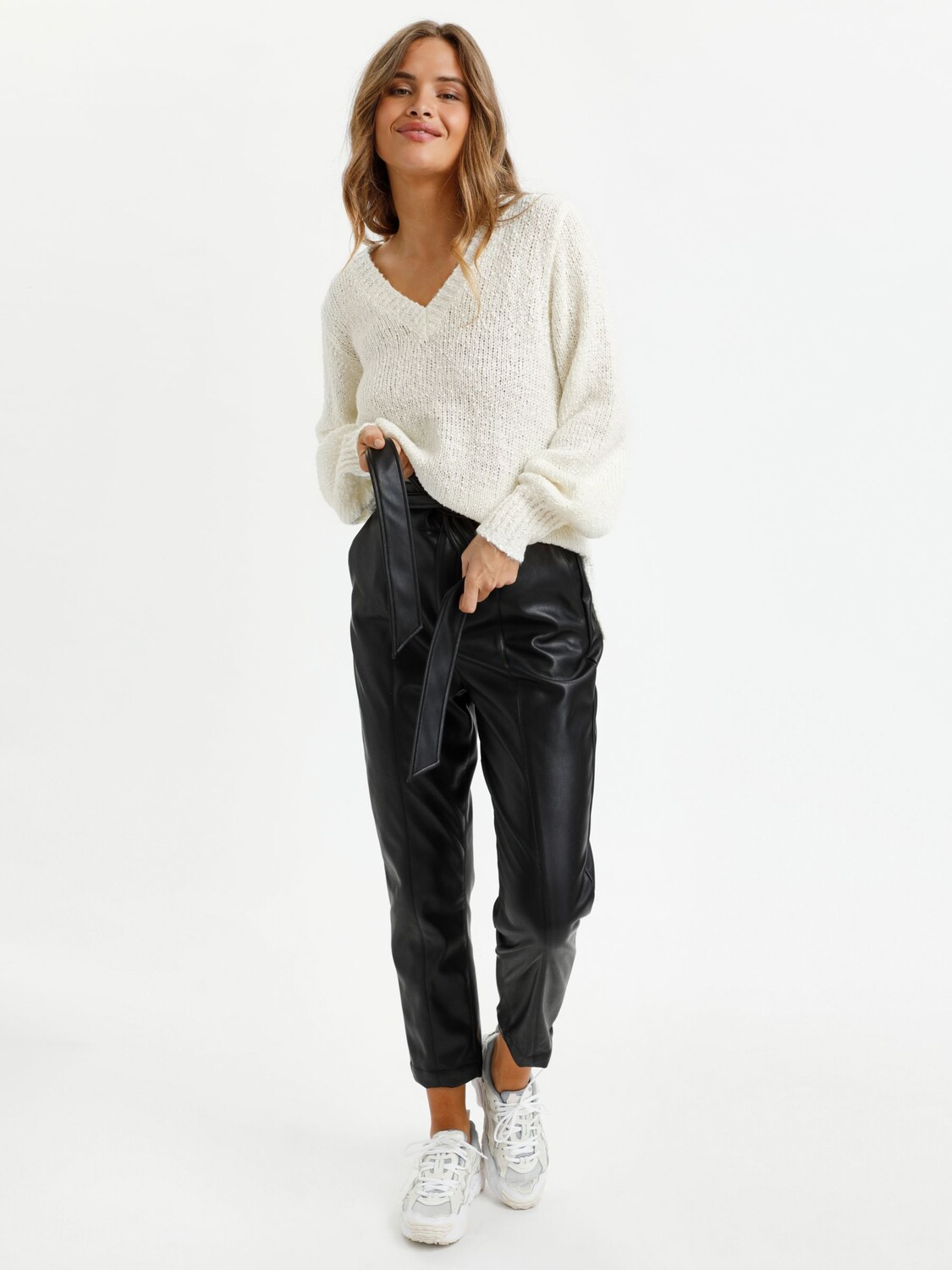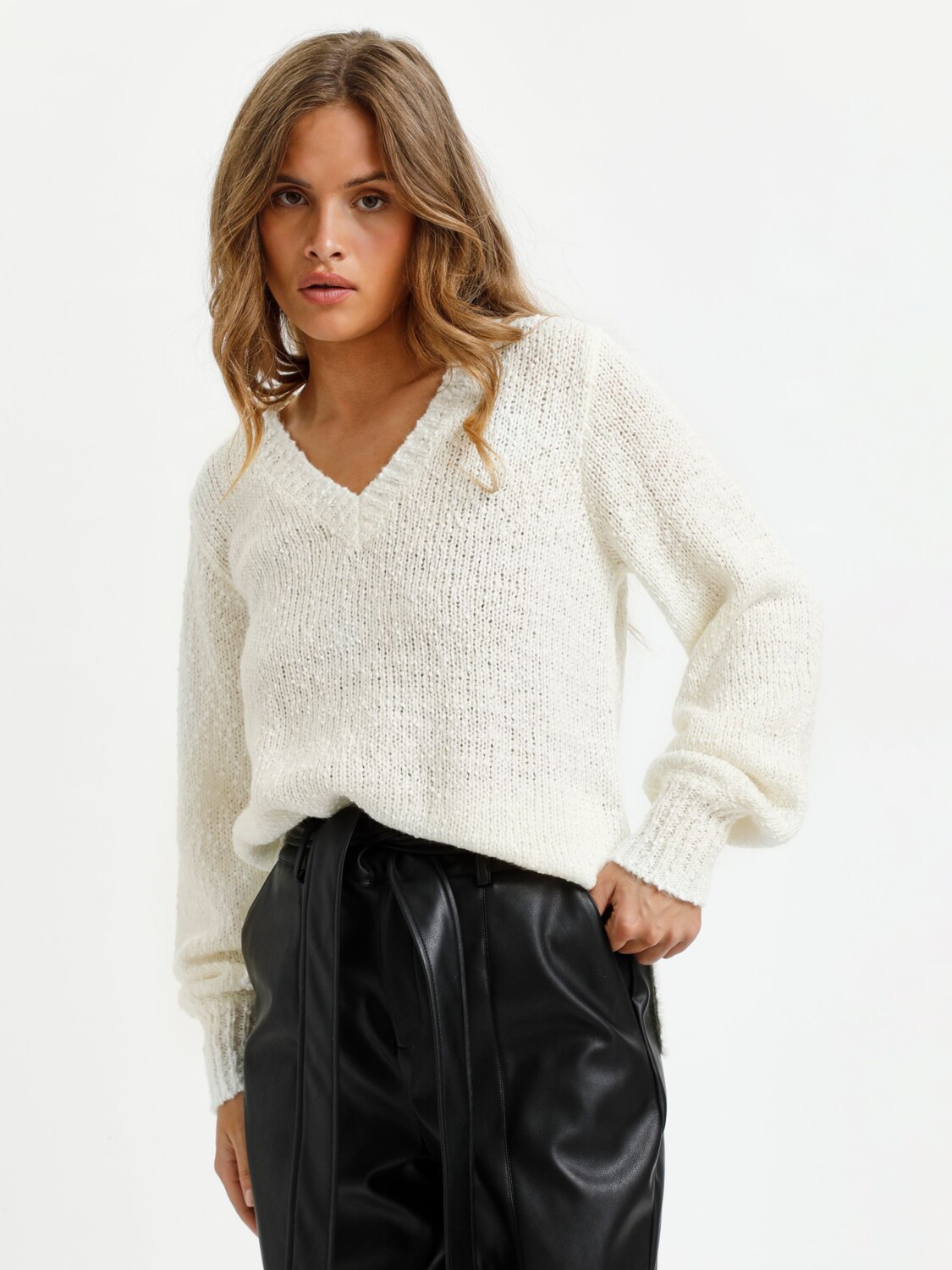 Вязаный джемпер Linana с V-образным вырезом KAFFE, мел