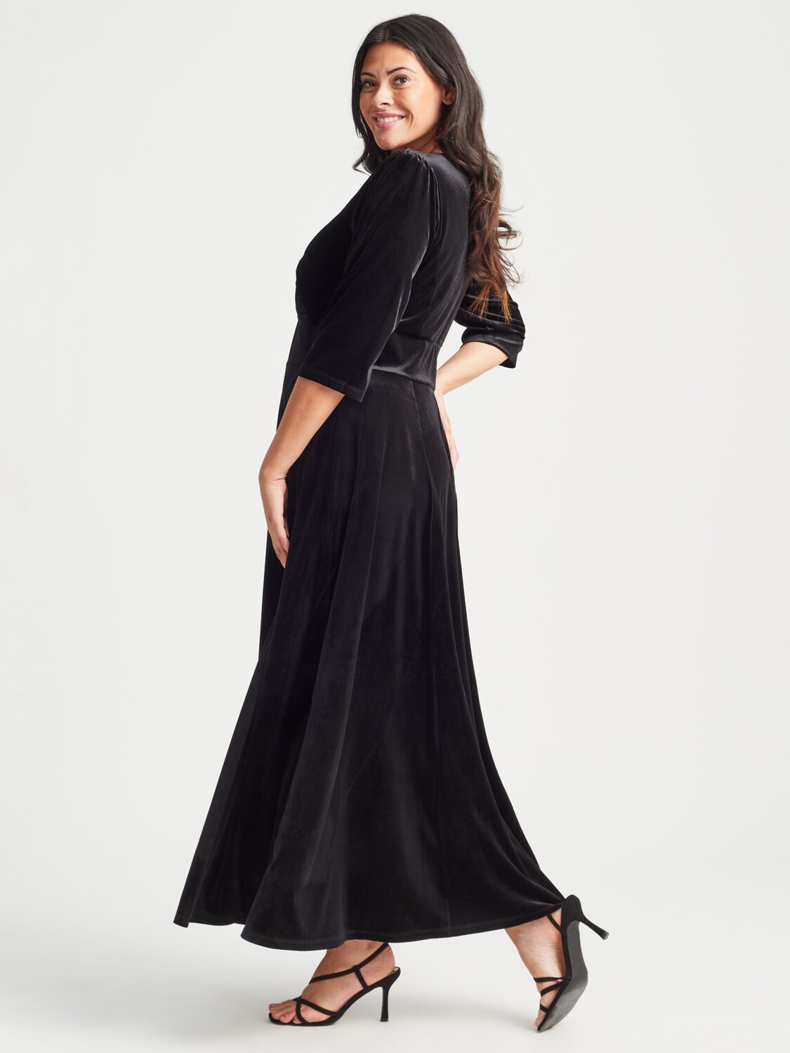 Это платье длиной до пола от Scarlett & Jo, которое смотрится выигрышно во всех нужных местах, выполнено из смешанных тканей. Благодаря универсальному V-образному вырезу и рукавам до локтя этот фасон позволяет продемонстрировать свою универсальность.