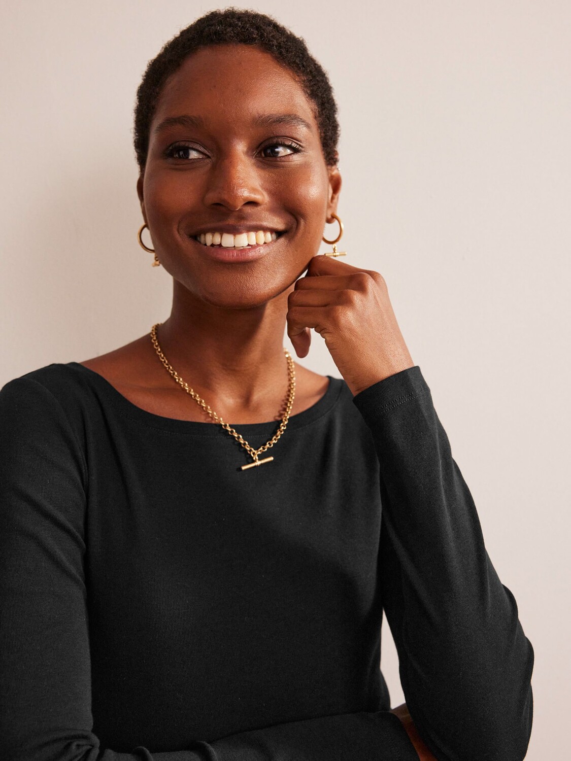 Трикотажный топ с вырезом лодочкой Essential Boden, черный