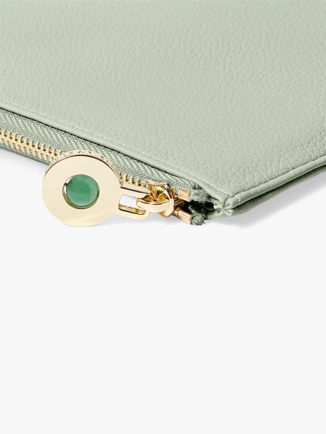 В этом месяце сумка от Katie Loxton выполнена из веганской кожи и оснащена застежкой-молнией, украшенной настоящим полудрагоценным камнем. Дополнены фирменными золотистыми деталями, подчеркивающими уникальные черты характера месяца.