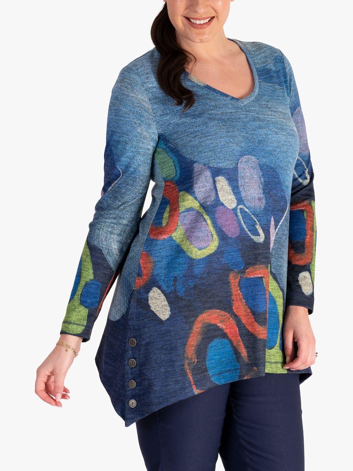 Эта туника из джерси делает повседневный образ проще и оживляется благодаря абстрактному принту в виде кругов. Создавая непринужденный образ с V-образным вырезом, пуговицами по бокам подола и длинными рукавами, эта модель идеально подойдет вам в непринужденные дни с друзьями. | Длина туники 87 см от точки плеча до самой длинной части подола. .