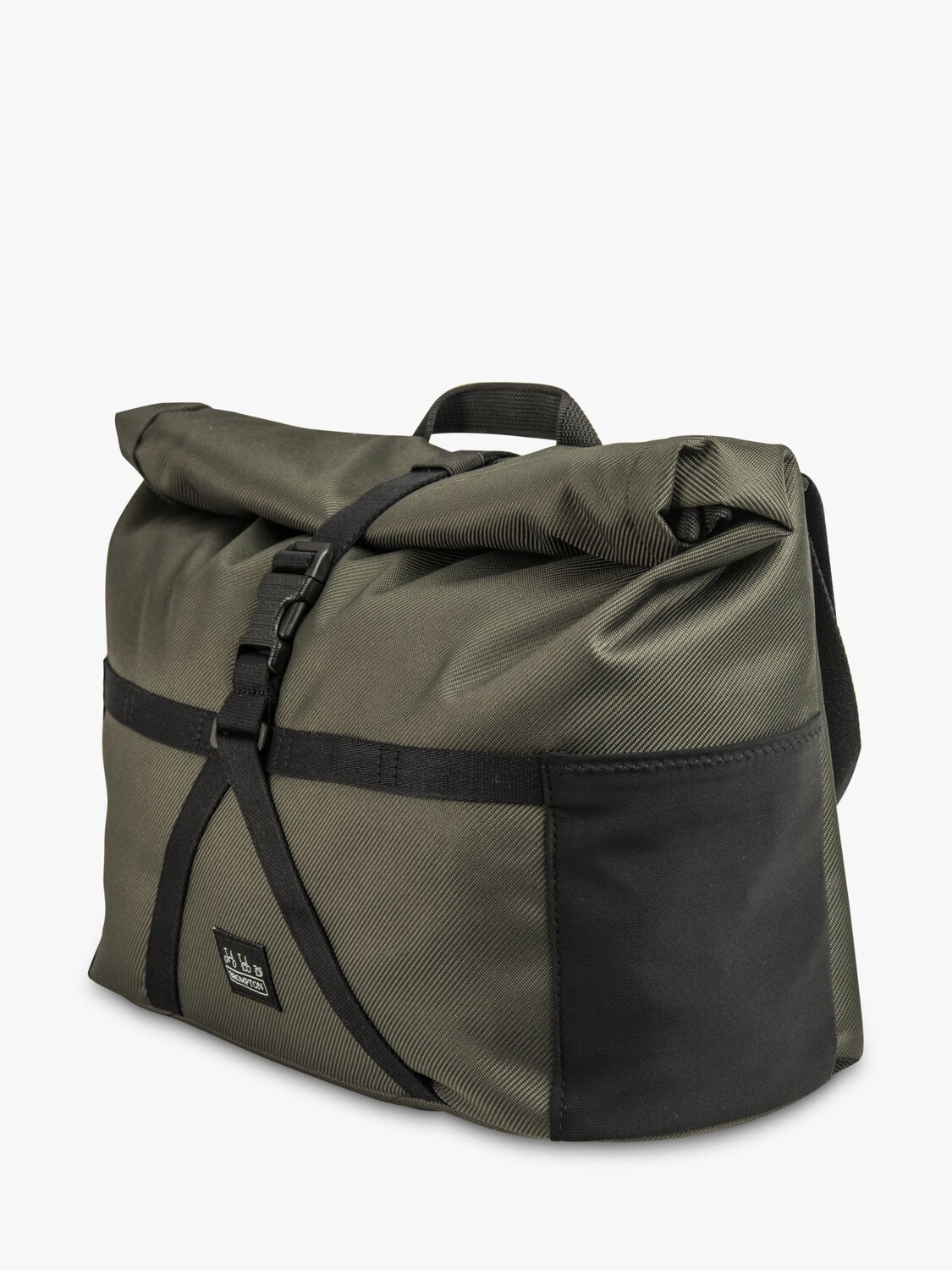Этот складной верх, изготовленный из материалов с высокой водостойкостью, имеет несколько отделений для хранения, в том числе мягкий чехол для ноутбука, задний карман на молнии для ценных вещей и боковые сетчатые карманы, идеально подходящие для бутылки с водой или перчаток. Он также оснащен прорезиненной лямочной ручкой и совместим со всеми велосипедными рулями Brompton. Несовместимо с электровелосипедами Brompton Electric.
