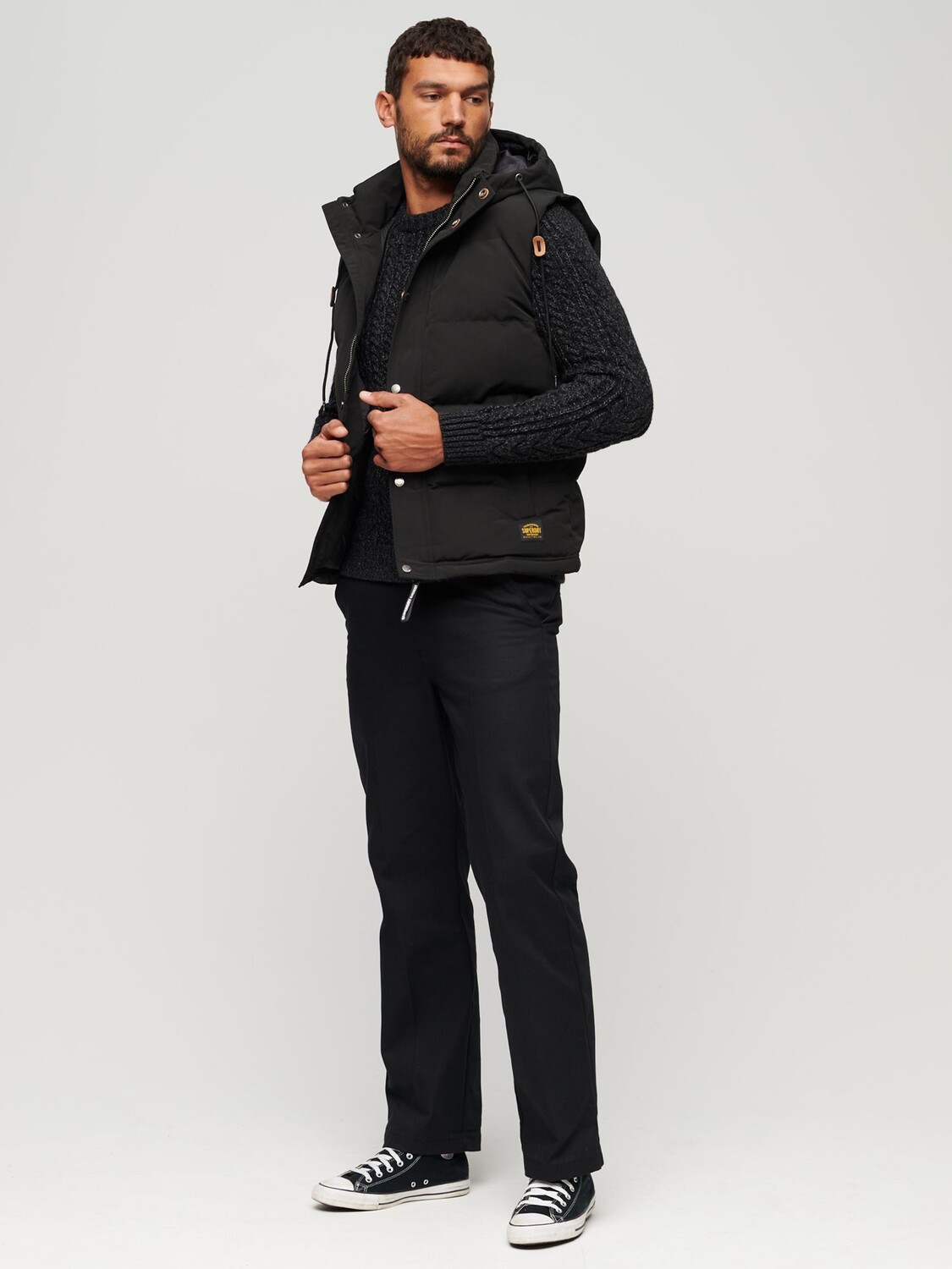 Этот жилет от Superdry создан для более мягких дней, когда нет необходимости в полном пальто. Он изготовлен из прочной ткани, имеет стандартную длину и застегивается на аккуратные пуговицы и молнию для удобного надевания и снятия.