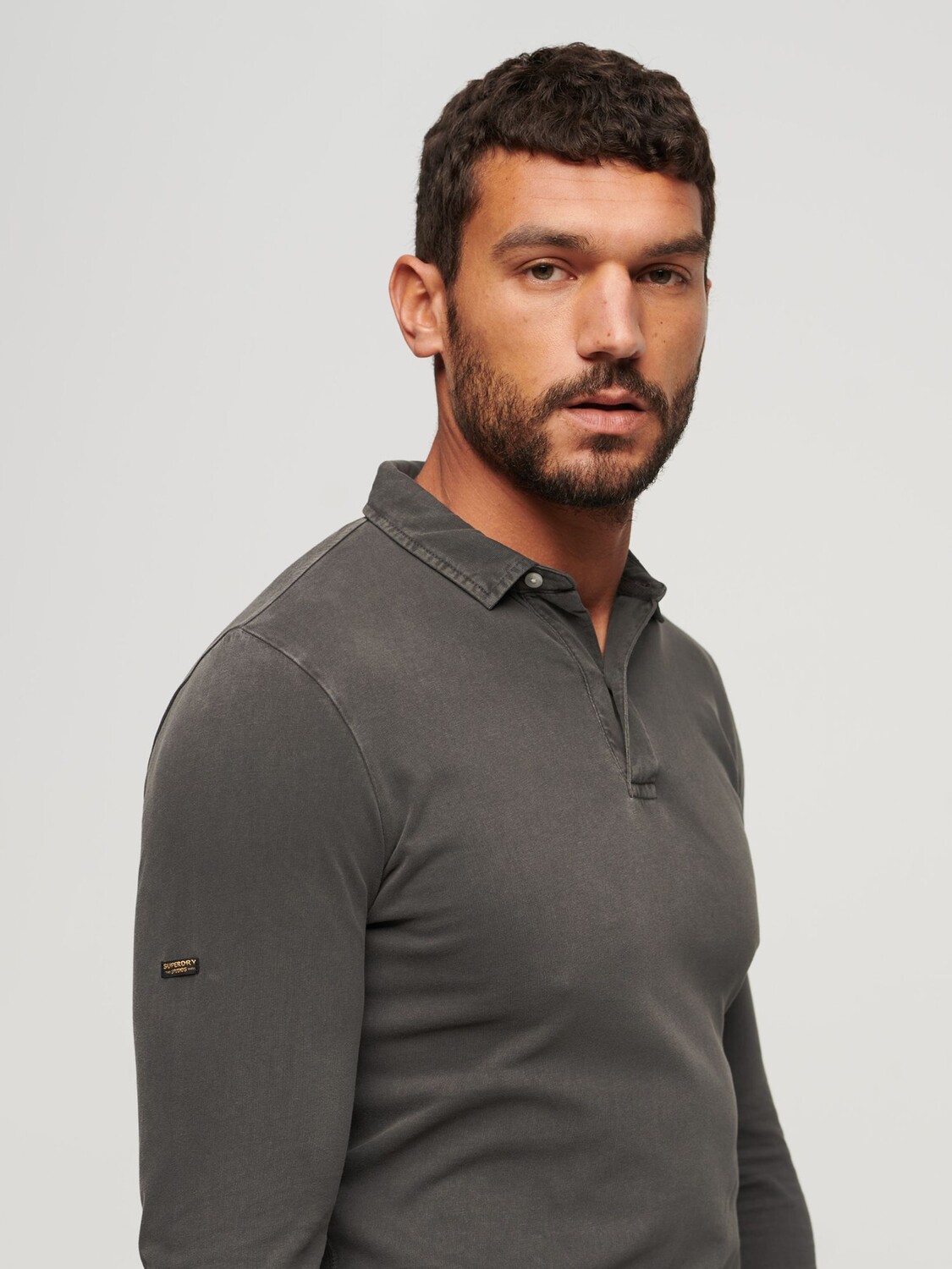 Рубашка поло из джерси с длинными рукавами Studios Superdry, мытый черный 7 106₽