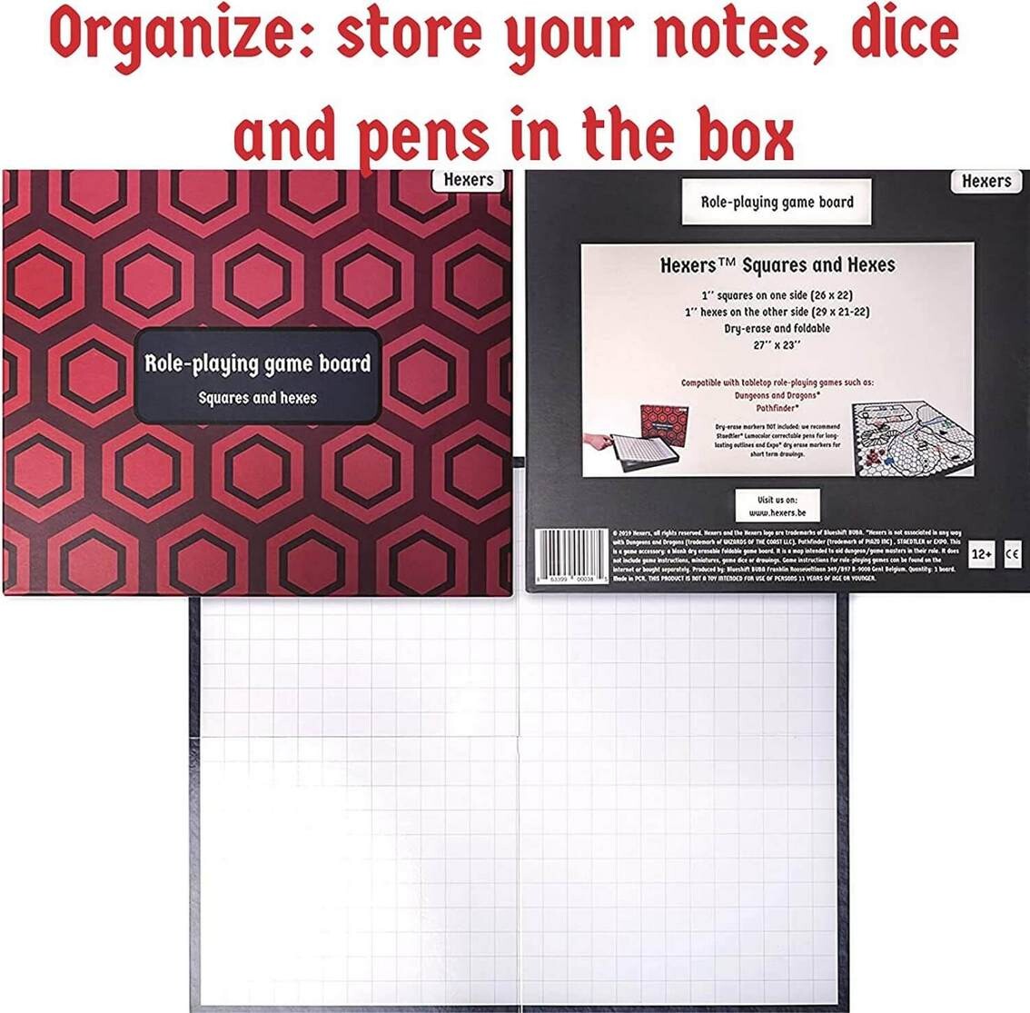 Аутентичная ролевая игровая доска от Hexers, альтернатива коврику, совместимая с Dungeons and Dragons D&D DND Pathfinder RPG, 68x58 см, 2.5 см квадратная и шестигранная боевая сетка, складная и стираемая методом сухого стирания.