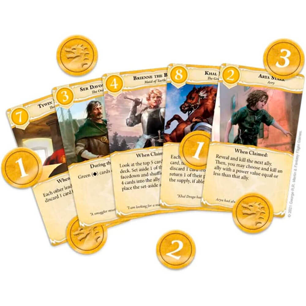 Управляйте ходом политики в A Game of Thrones: B'Twixt, динамичной карточной игре для 3–6 игроков, и возглавьте свой Дом в роли одного из девяти культовых персонажей из серии «Песнь льда и пламени». Используйте свое влияние, чтобы привлекать новых союзников и внимательно следить за лояльностью других игроков, поскольку вы стремитесь иметь самый влиятельный малый совет в Вестеросе. Просто будьте осторожны со своими собственными союзами — вы никогда не знаете, когда кто-то нанесет вам удар в спину!