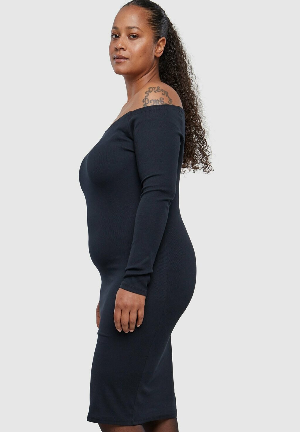 Платье Urban Classics OFF SHOULDER LONGSLEEVE, черно-синий