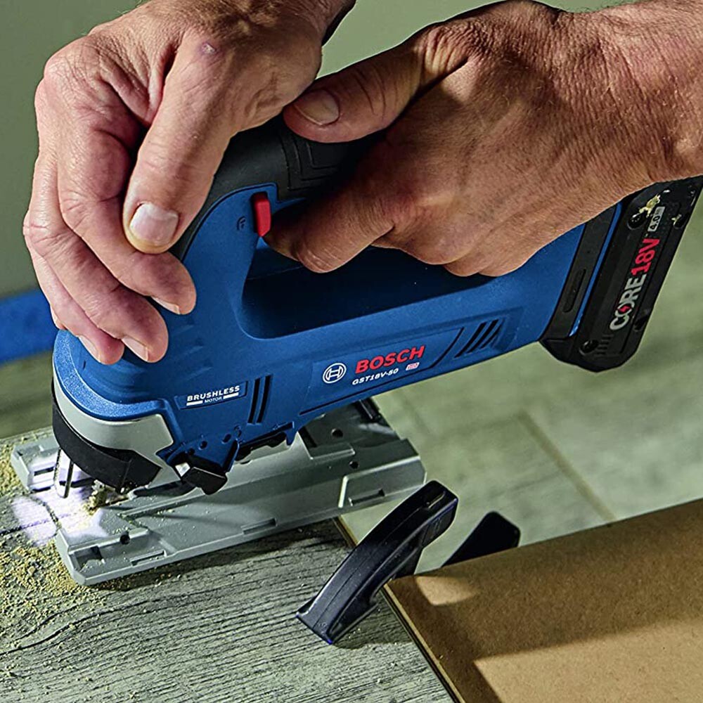 Аккумуляторный лобзик на 18 В разработан для криволинейных пропилов, обеспечивая высокую и управляемую мощность. Он обеспечивает шкалу переменной скорости, позволяющую сопоставлять скорость с материалом. Электролобзик имеет четыре режима вращения для управления пропилом. Линии разреза остаются видимыми благодаря сдуву пыли и светодиодной подсветке. Электролобзик оснащен системой смены полотна с Т-образным хвостовиком без инструментов.