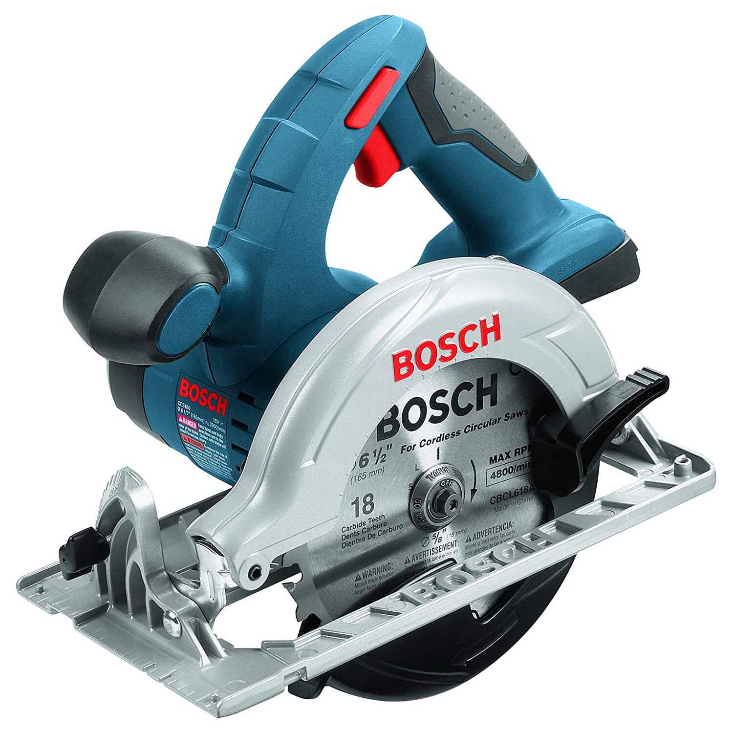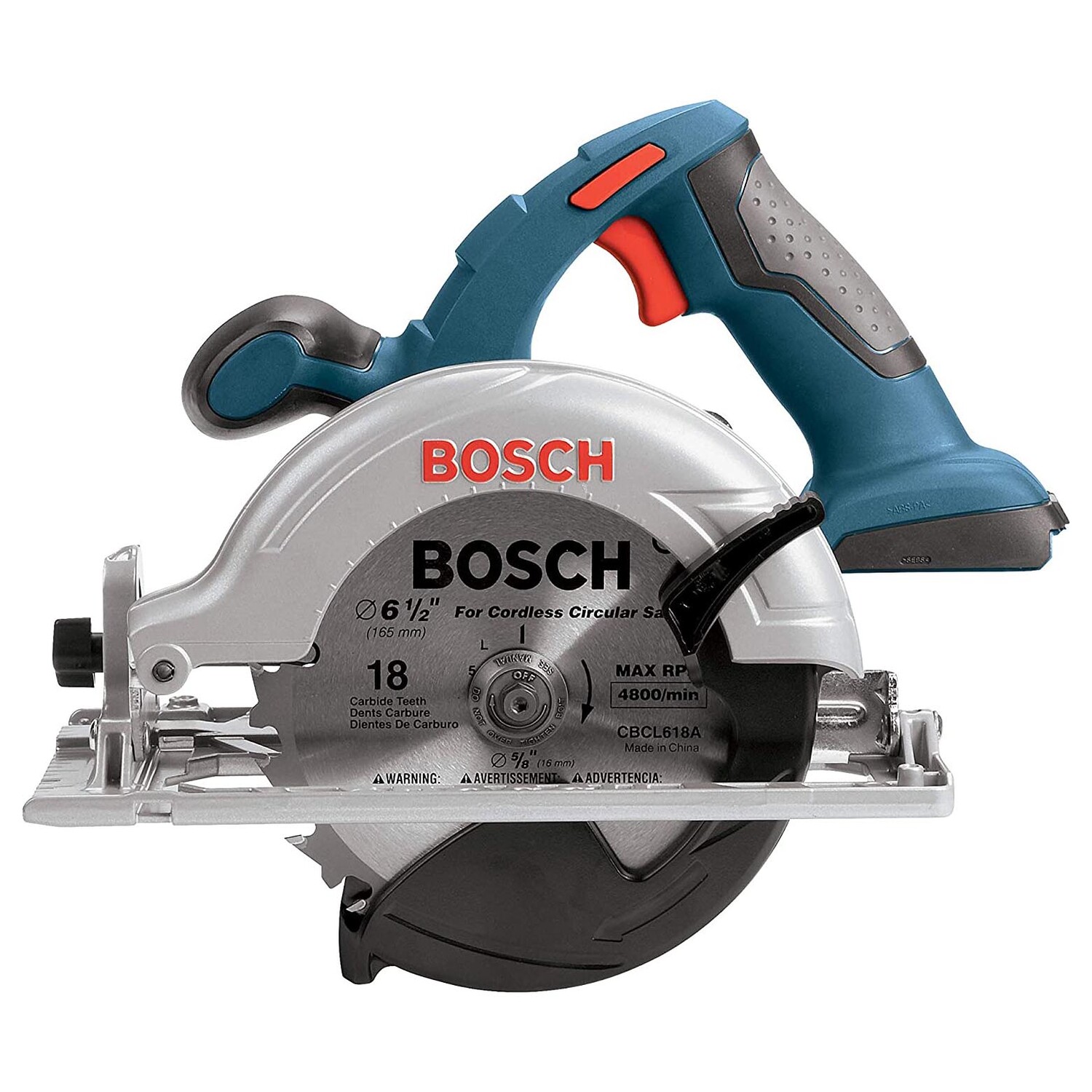 Профессиональная аккумуляторная литий-ионная циркулярная пила Bosch CCS180 с напряжением питания 18 В использует лезвия диаметром 6 1/2 дюйма и способна резать материал толщиной 2 дюйма под углом 90 градусов, а также 1,9/16 дюйма материал толщиной в дюйм со скосом под углом 45 градусов. Эта пила имеет конструкцию с левым лезвием, чтобы обеспечить лучший обзор линии реза, когда основная рукоятка пилы удерживается в правой руке. Другие функции включают в себя эксклюзивный нижний защитный кожух, препятствующий зацеплению, для облегчения врезания в заготовку, диапазон наклона кромки под углом 50 градусов, позволяющий выполнять широкий спектр фасок, блокировку шпинделя для быстрой и легкой замены лезвия, а также легко читаемую глубину реза.