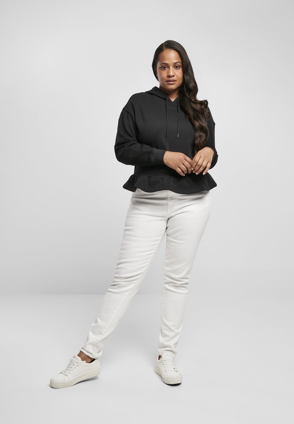 Толстовка Urban Classics LADIES ORGANIC VOLANTS HOODY, черный