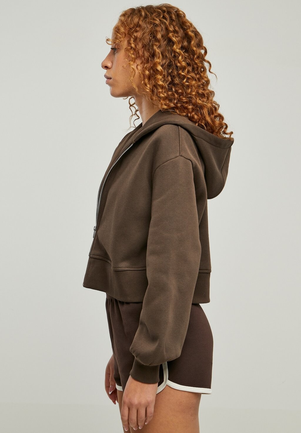 Толстовка на молнии Urban Classics КОРОТКИЙ, коричневый