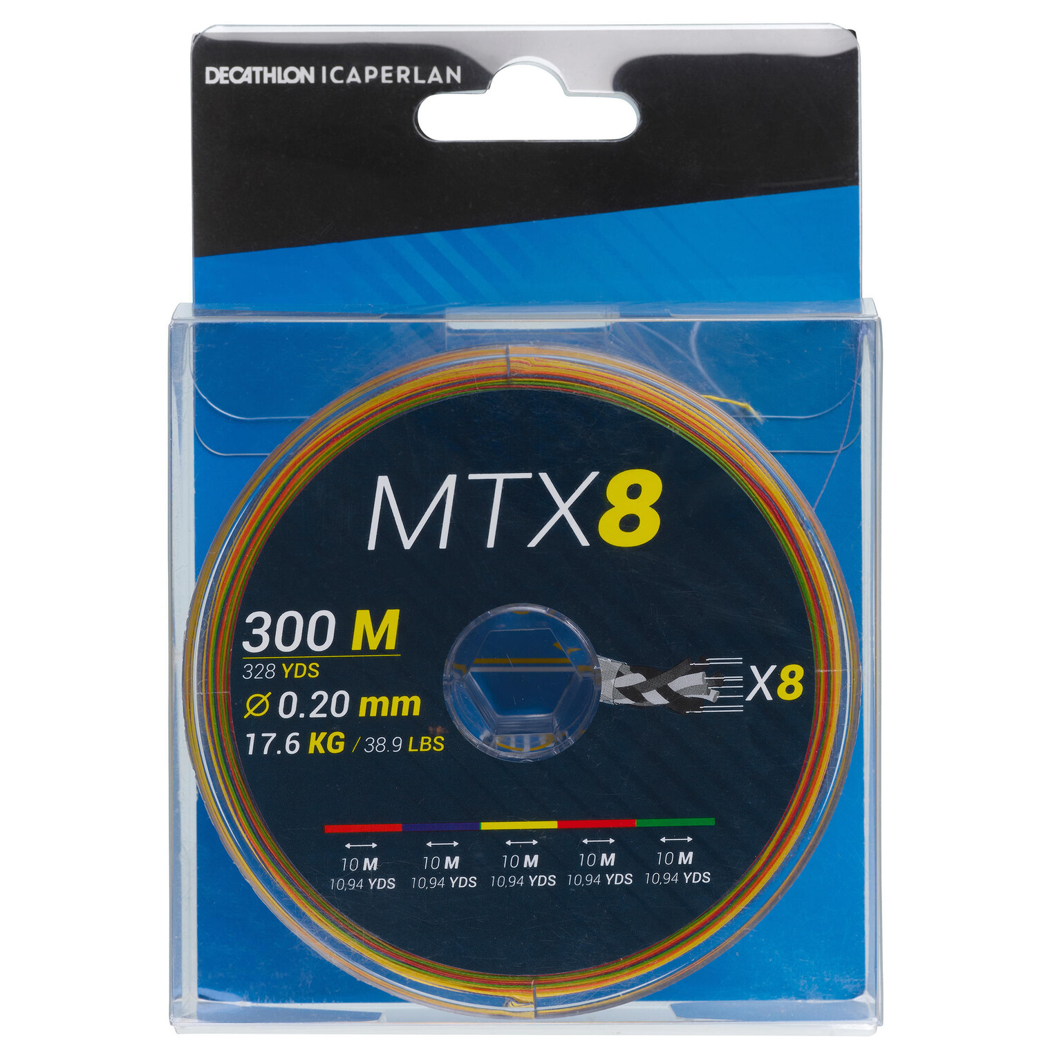 Восьмиплетеная леска для всех видов морской рыбалки. Восьмиплетеная леска MTX8 Multicolor обладает высокой прочностью на растяжение и очень легко скользит. 5 цветов через каждые 10 м: оранжевый-синий-желтый-красный-зеленый