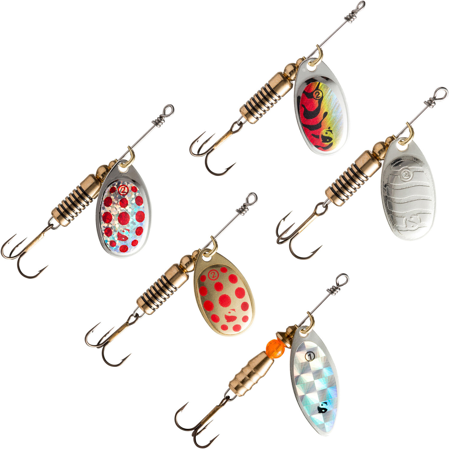 Используется для спиннинговой ловли хищника.Подходит для большинства условий с этим универсальным набором блесен разного размера 1 и 2. Спиннеры создают световые блики и очень привлекательные вибрации.